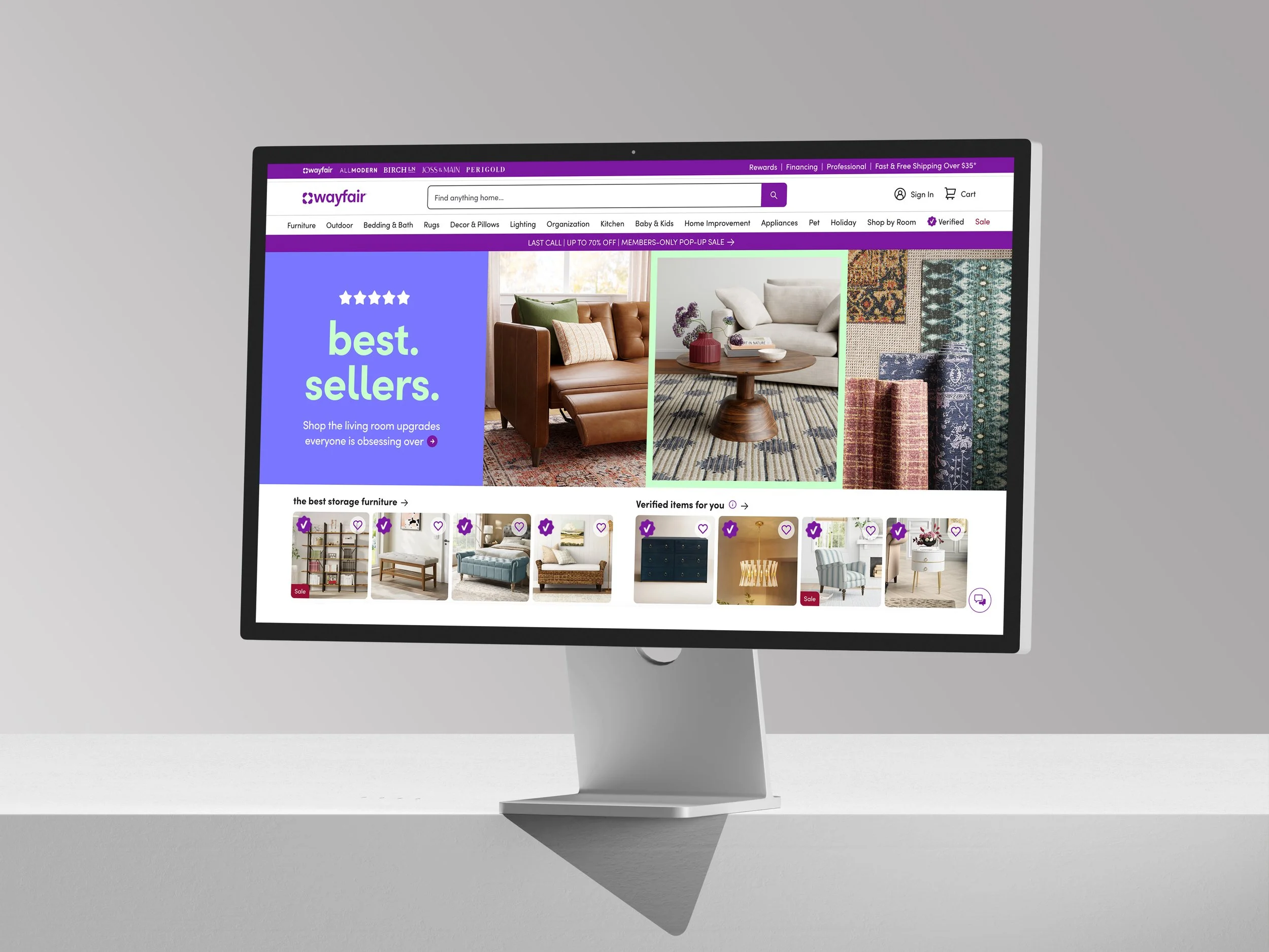 Living Room Best Sellers homepage banner with motion Available to all customers on-site pushing top-rated products.