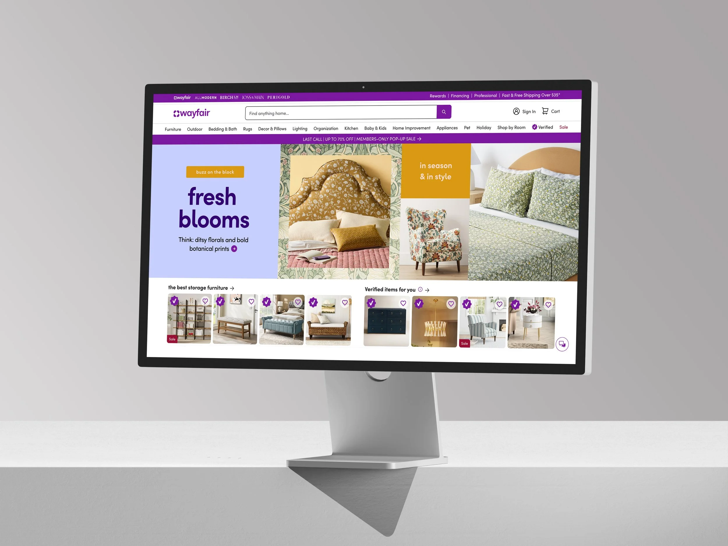 Fresh Blooms homepage banner with motion Available to all customers on-site pushing seasonal trends.